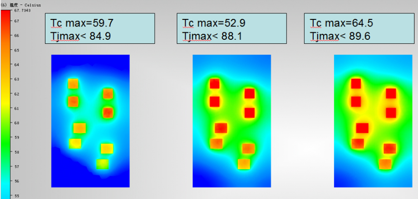 RFC模塊散熱器溫度耗散仿真結果及示意圖: