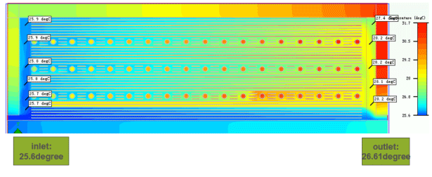 動力電池包 #1 水冷板散熱仿真結果示意圖: