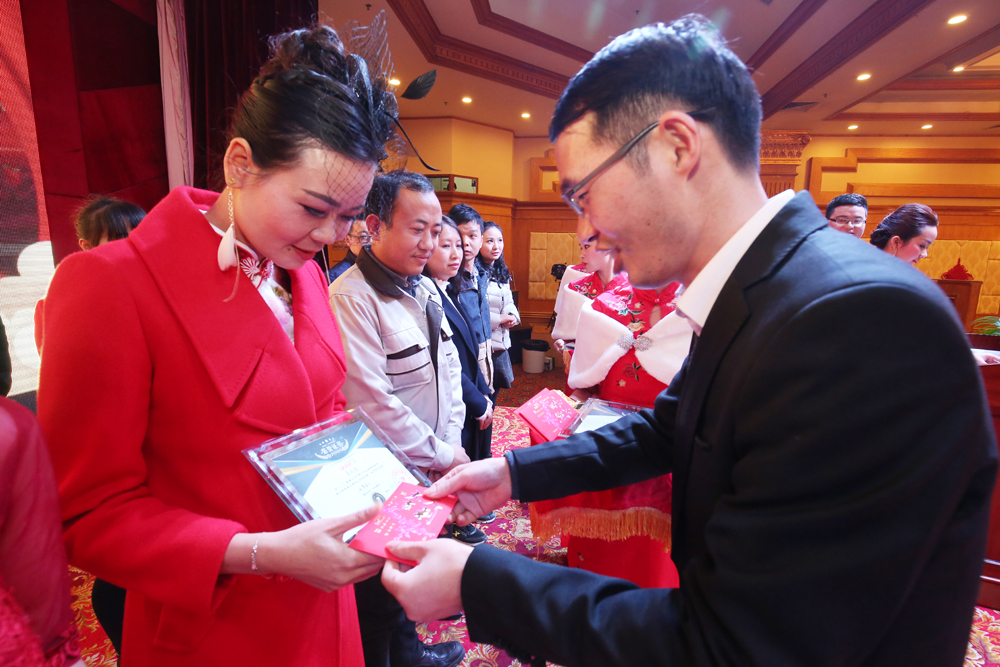 年度優(yōu)秀員工表彰儀式上,公司董事長為文軒優(yōu)秀精英進(jìn)行頒獎,并合影留念,鼓勵大家在新的一年力爭上游,勇攀高峰。