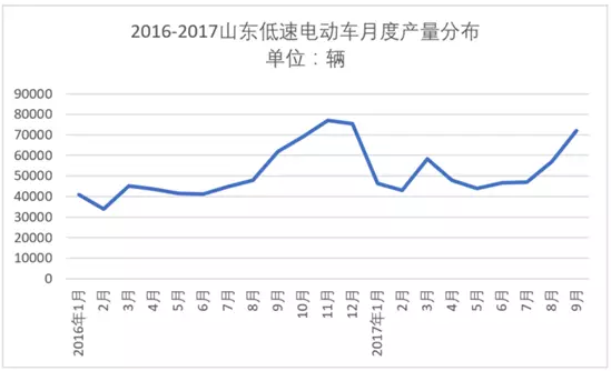動力電池散熱專家整理來自山東省汽車行業協會的統計數據,9月份山東生產低速電動車71969輛,同比去年9月的6.21萬臺增長15.9%,環比8月增長25.9%。而且9月份的產量數據直接躍升到7萬臺水平,而2016年只有11月份和12月份爬坡到了7萬臺,分別為7.71萬臺和7.53萬臺。