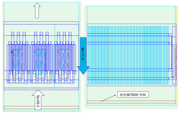 假設系統進風溫度55?C,進過電抗后風溫為57.1?C,假設使用導熱介質0.15mm,K=3W/m*K)