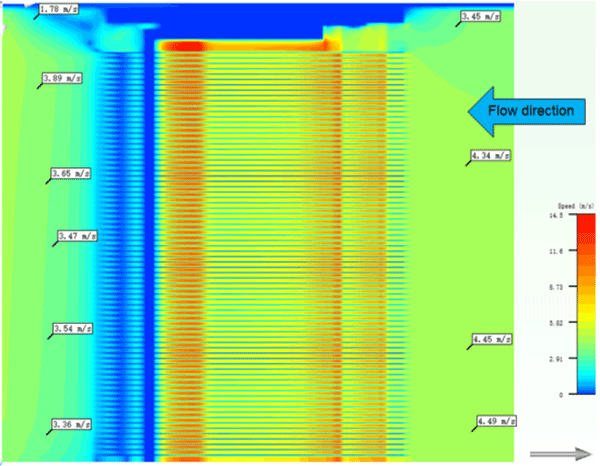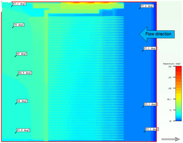 散熱器底部熱管溫度擴散程度仿真示意圖:
